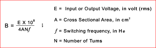 When the conductor or wire is wound around a magnetic materials ( ferrite, nanocrystalline, amorphous, iron, nickel steel, grain oriented steel, MPP, sendust, high flux, etc), and current flows through the conductor, a flux is induced on the magnetic materials. This flux is induced by the magnetic field generated by the current carrying conductor. The magnetic material's atomic parts got influenced by the magnetic field and causes them to align in a certain direction. The application of this magnetic field on the magnetic materials is called magnetization force. Magnetization force is called Oersted or A/m (amperes per meter)or A/cm. The units for Magnetization force is "H" The results of applying these magnetic field from the current carrying conductor causes the magnetic materials to have magnetic flux being formed inside the magnetic materials. The intensity of these flux is called flux density. Therefore flux density is defined as the flux per square area. Flux density is called gauss or Tesla. I Tesla is10,000 gauss, or 1mT is 10 gauss. The unit for Flux is "B" Thus, the hysterisis loop is often called the BH curve. Understanding of the BH curve is extremely important in the designs of transformers, chokes, coils and inductors. For a square wave application as in SMPS (square wave), the Flux density or B in Gauss is given as: |